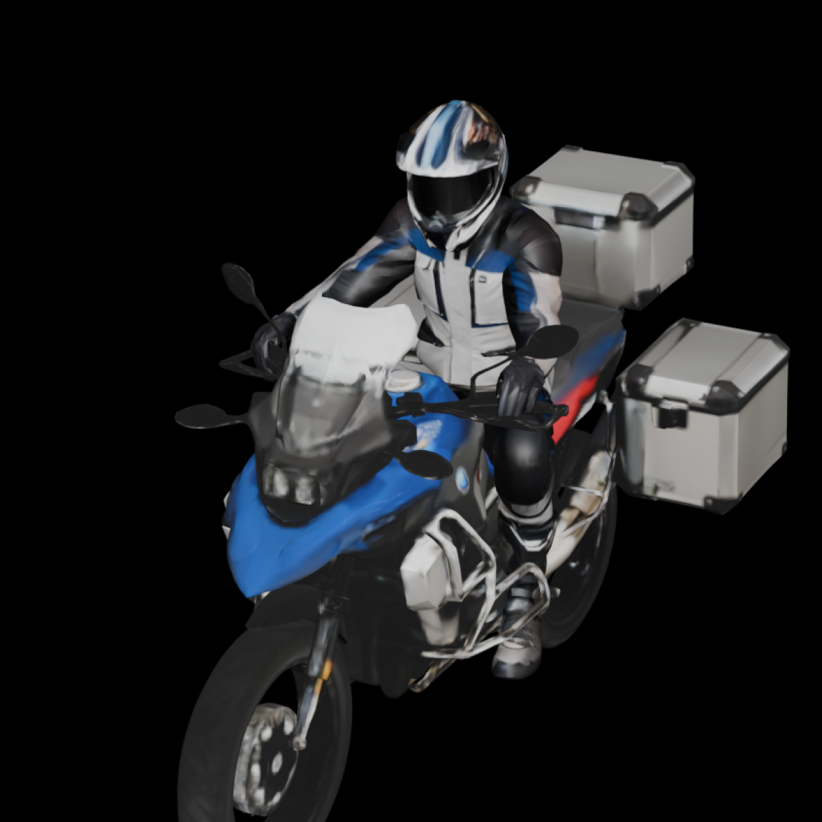 The BMW GS Adventure Bike model is built to represent long-distance touring and off-road travel with clarity and realism. It features a robust adventure-style frame, tall windscreen, wide handlebars, and detailed front suspension. The side panniers and rear storage box are modeled as part of the vehicle, giving it a distinctive expedition-ready silhouette. Proportions are optimized for smooth map movement and consistent visibility at different zoom levels. Clean geometry, balanced detailing, and neutral color contrast ensure the bike remains clearly readable on any terrain. This model is ideal for showcasing road trips, mountain routes, cross-country rides, and extended adventure journeys...