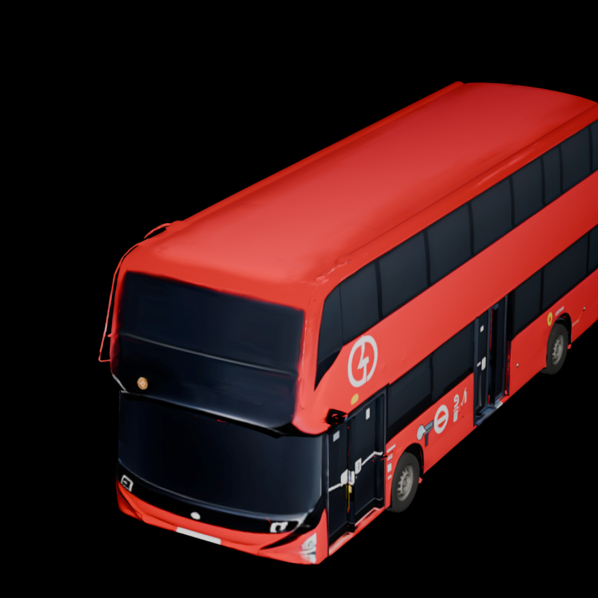 This double-decker bus model features a tall, modern profile with two full passenger levels and a clean, streamlined exterior. Its bold red body, large panoramic windows, and clear door detailing make it highly visible while moving along routes on the map. The extended length and vertical design help it stand out in dense urban environments and city travel animations. Smooth geometry and optimized proportions ensure stable performance during long route playback. Ideal for metropolitan journeys, sightseeing routes, and public transport visualizations, this model integrates naturally with road networks and urban map styles in Travel Animator.