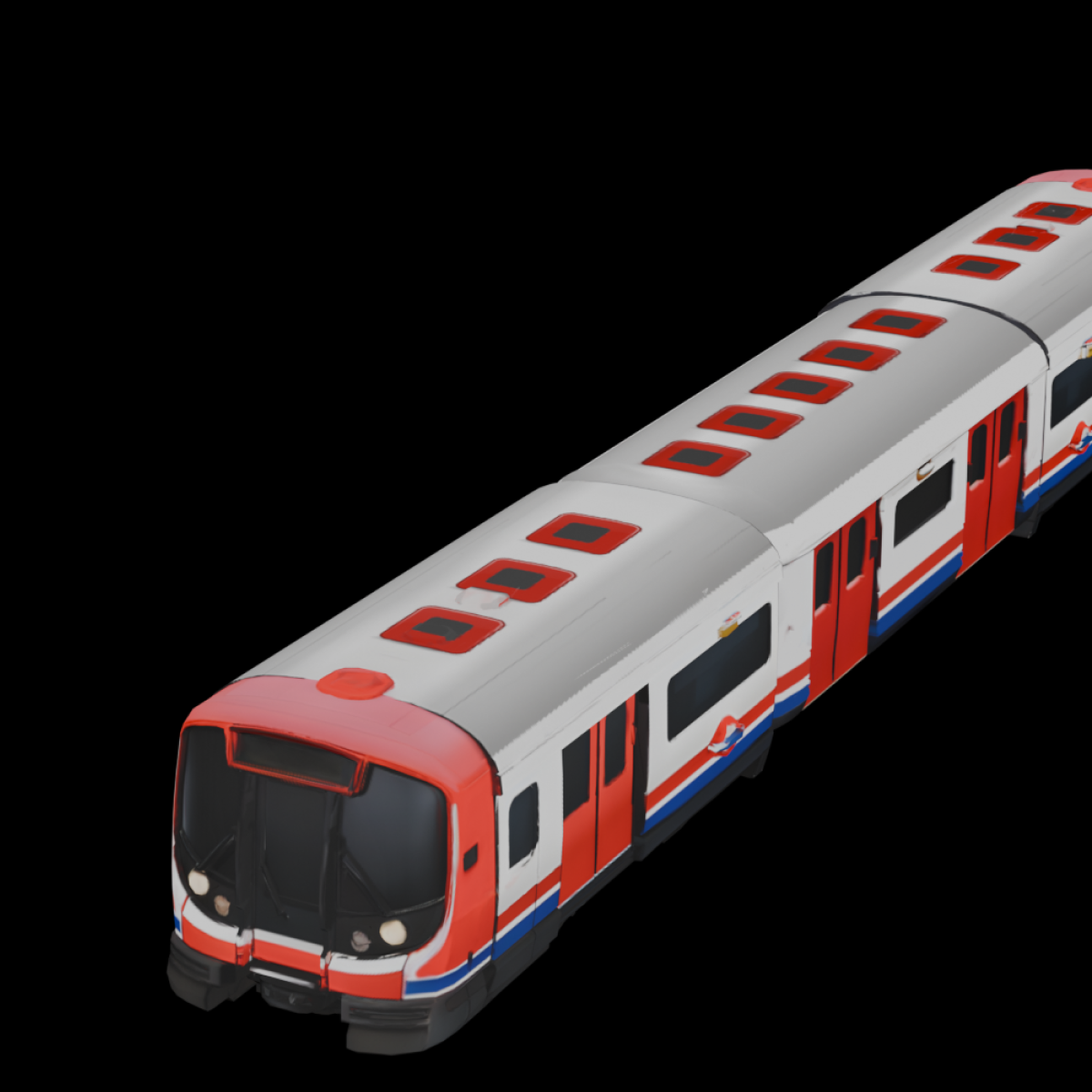 This underground metro train model features a compact, articulated design with a rounded front, continuous side doors, and evenly spaced windows optimized for dense urban routes. The streamlined roof profile and connected carriages create a smooth, uninterrupted silhouette ideal for rail-based map animations. Clear door placement and consistent proportions keep the model readable at different zoom levels while maintaining realistic scale. Its geometry is optimized for steady, linear movement along rail paths, making it well suited for city transit visualizations, daily commute routes, and metropolitan rail networks where frequent stops and short distances define the journey.