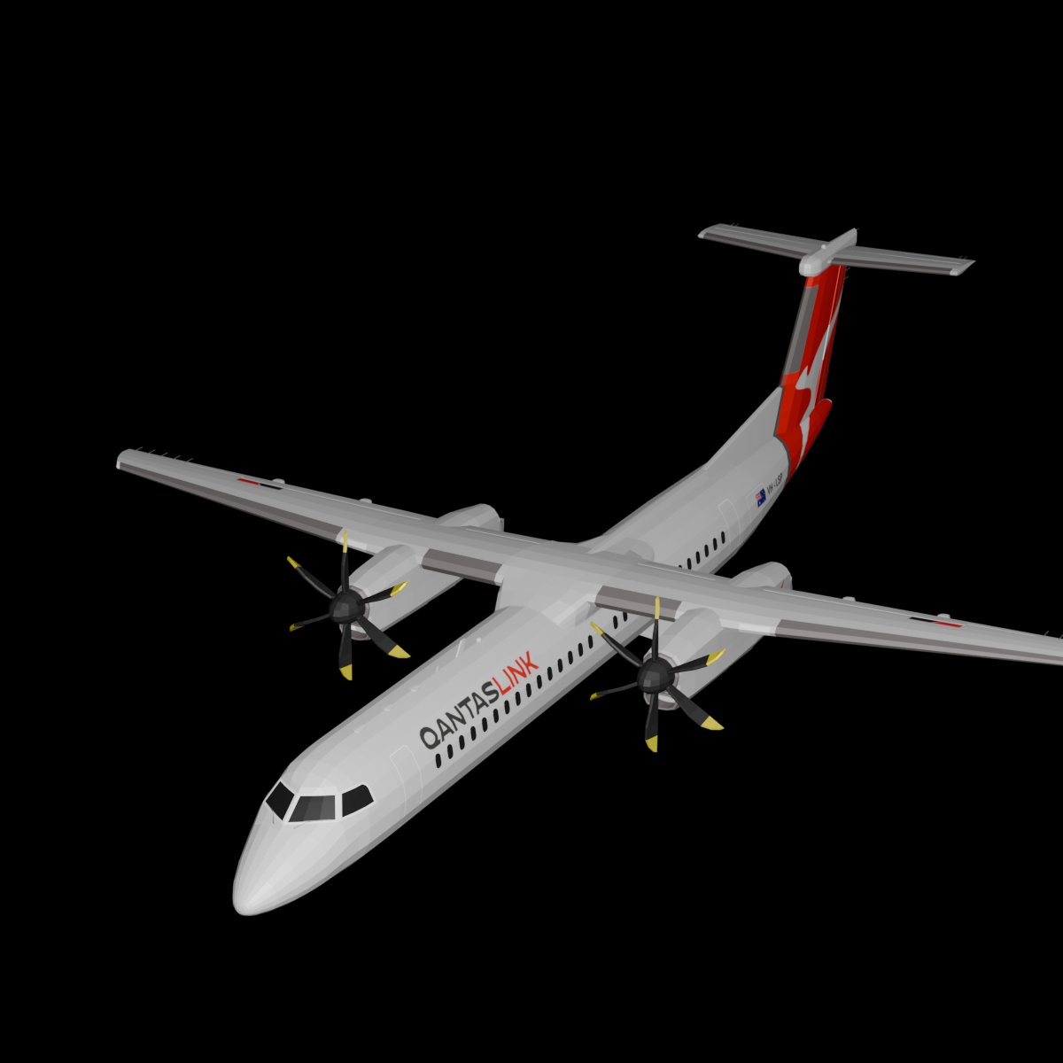 This model depicts a compact regional turboprop aircraft with a slim cylindrical fuselage and a high-mounted straight wing. Two large propeller engines are mounted under the wings, giving the aircraft a clear, balanced silhouette that reads well from a top-down or angled map view. The nose is short and slightly rounded, while the tail features a tall vertical fin with a horizontal stabilizer mounted high, forming a T-tail profile. Overall proportions emphasize efficiency and stability, making it visually distinct as a short-to-medium range regional aircraft suited for continuous airborne movement along routes.