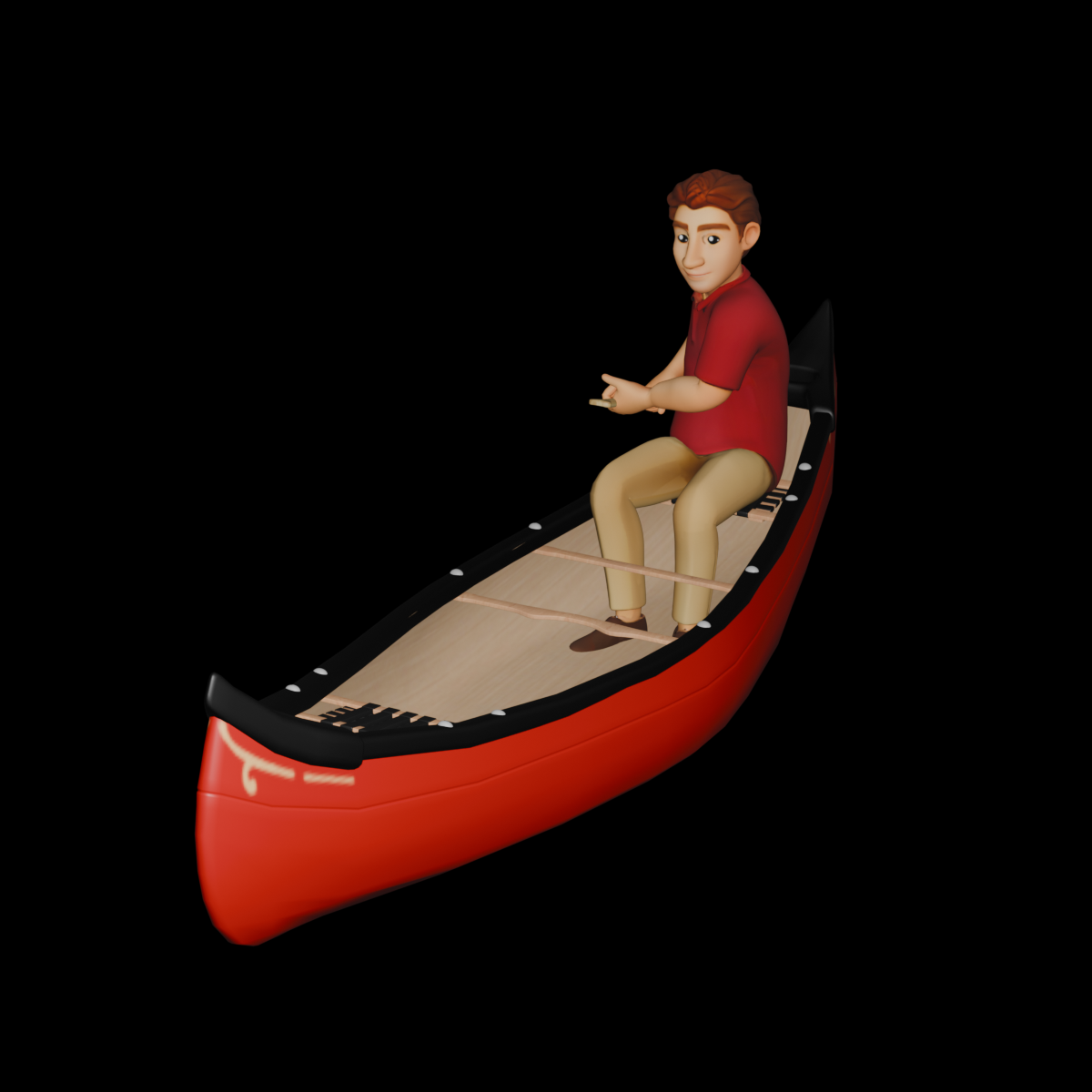 This 3D model features a friendly, stylized man seated in a classic red canoe, designed with a clean and modern animated look. The character has a relaxed posture, expressive facial features, and simplified proportions that suit storytelling and travel animations. He wears casual clothing, making the model versatile for leisure, adventure, or scenic journey themes. The canoe is detailed with smooth curves, wooden interior textures, and balanced proportions, giving it an authentic yet lightweight feel. Ideal for river journeys, lake explorations, or calm water routes, this model adds warmth, motion, and human presence to travel animations.