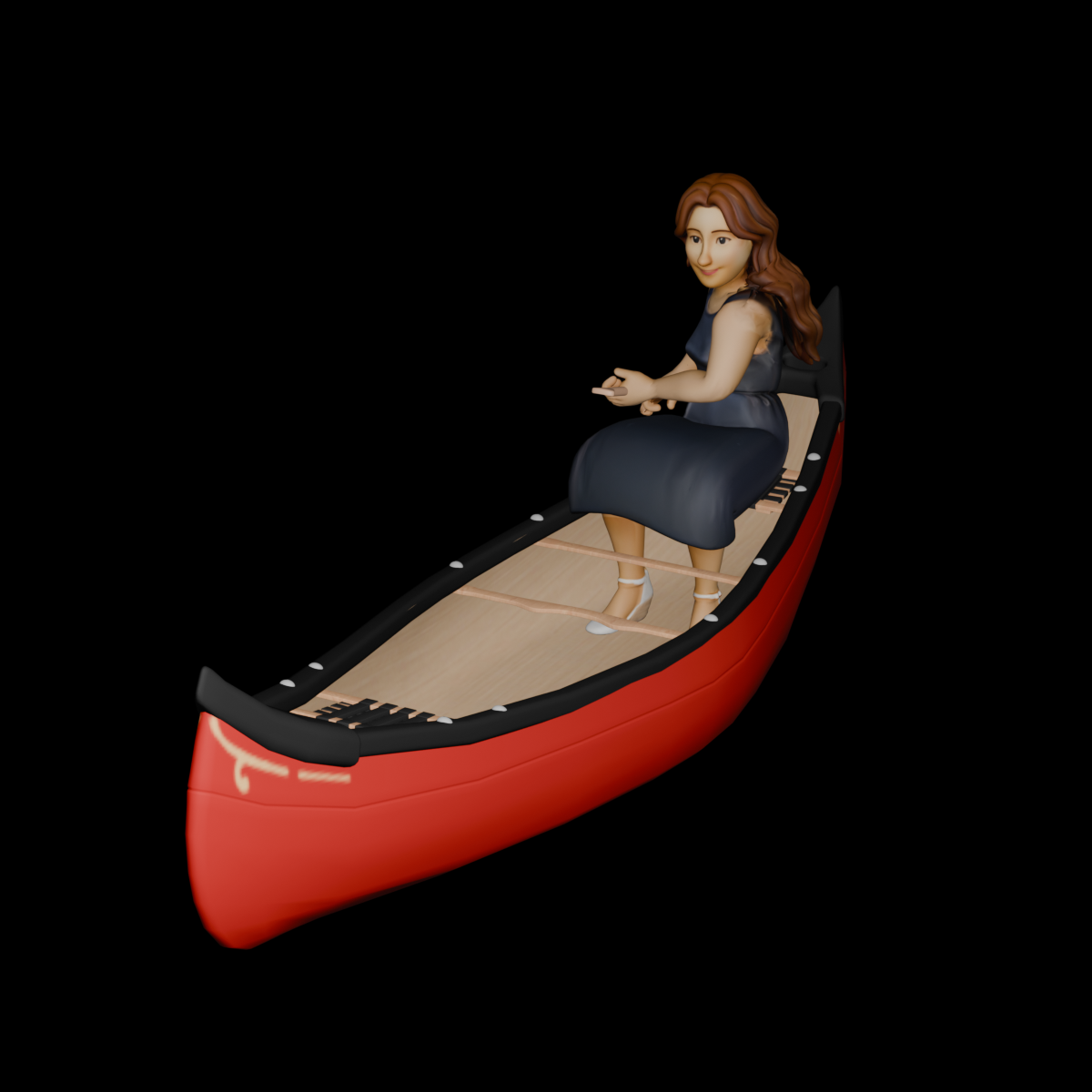 This 3D model showcases a stylized woman seated gracefully in a classic red canoe, designed with a soft, animated aesthetic ideal for travel storytelling. The character features expressive facial details, natural hair flow, and a calm, relaxed pose that conveys leisure and exploration. She is dressed in a simple, elegant outfit, making the model versatile for scenic journeys, cultural routes, or peaceful water travel. The canoe includes smooth contours, a wooden interior finish, and balanced proportions, giving it an authentic yet lightweight feel. Perfect for rivers, lakes, and tranquil routes, this model adds warmth, personality, and narrative depth to Travel...