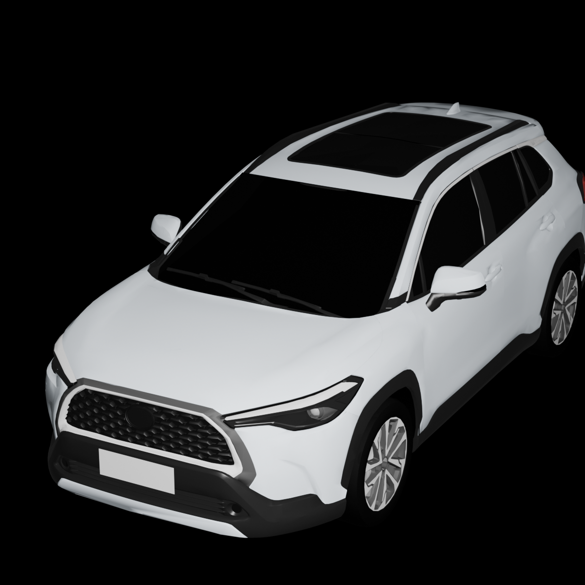 This model represents a compact SUV with a balanced, modern shape designed for everyday road travel. It has a slightly raised ride height, a smooth sloping bonnet, and a wide front stance that gives it a stable, confident profile. The roofline is gently curved with a large glass roof panel, while the sides are clean and sculpted with subtle wheel-arch cladding. Proportioned doors, a short rear overhang, and evenly spaced wheels make it well suited for smooth, continuous movement along urban and highway routes on the map. The overall form reads clearly from top-down and angled views, making it ideal...