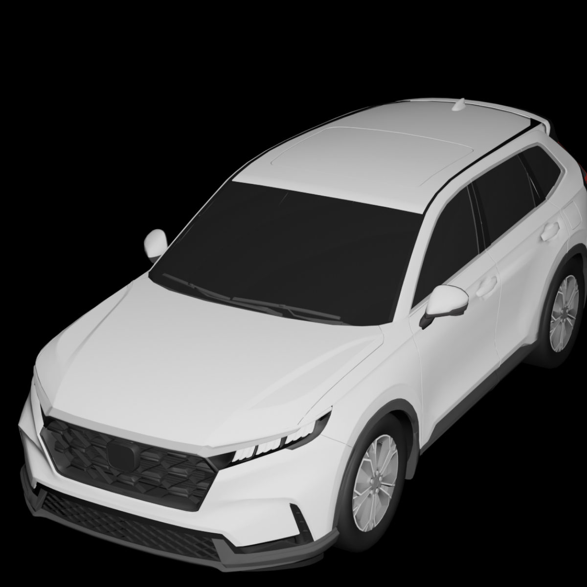A compact crossover SUV with a modern, clean design and slightly elevated ride height. The vehicle has a long hood, a smooth roofline, and a spacious rear section typical of family SUVs. The front features a wide grille with a geometric pattern, flanked by slim horizontal headlights that extend toward the fenders. The front bumper has a broad lower intake and subtle angular lines that give the vehicle a confident appearance.