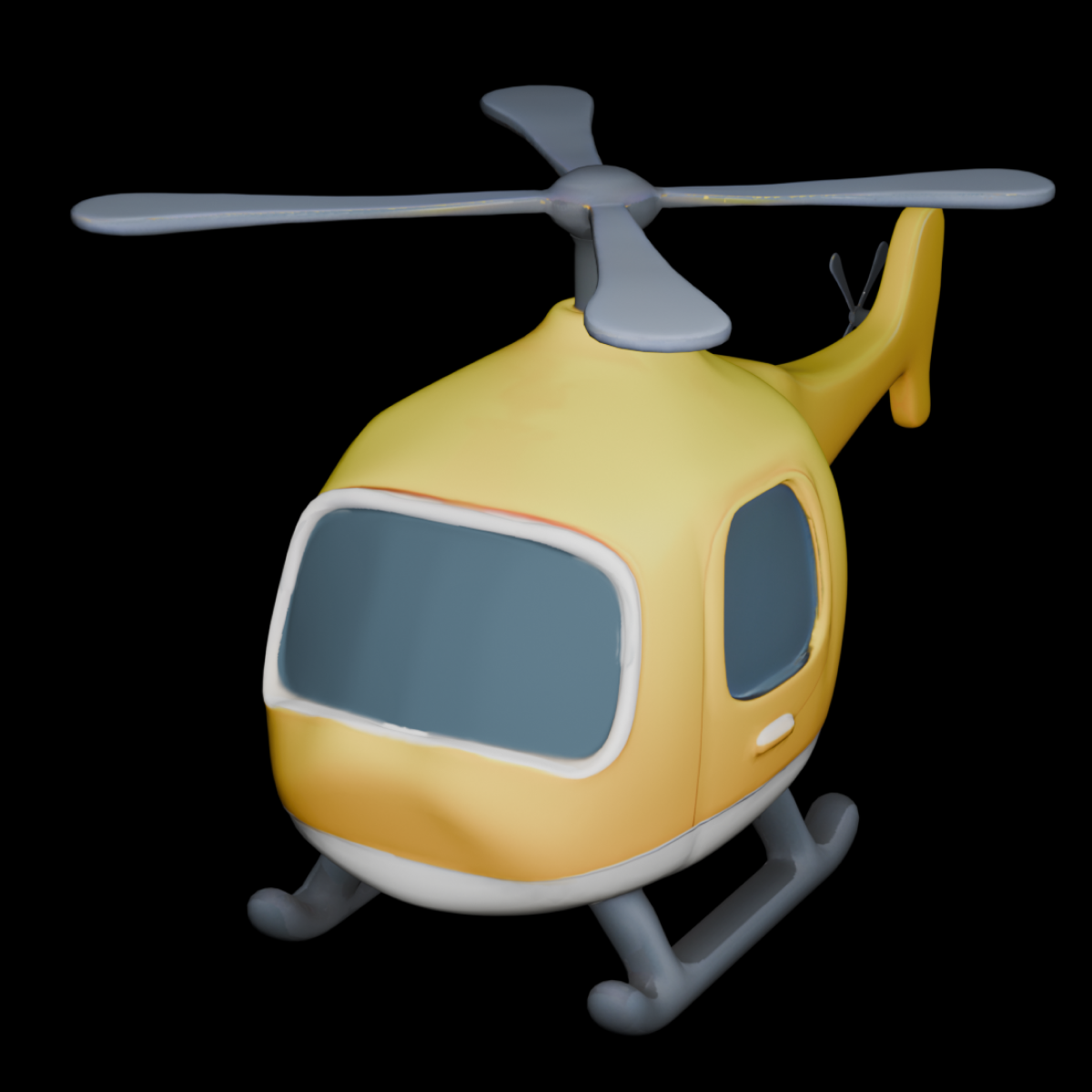 A small, stylized helicopter with a compact rounded body and simplified cartoon-like proportions. The fuselage has a smooth oval shape with a large curved front windshield that wraps slightly around the sides. The windows are wide and rounded, forming a continuous dark band around the cockpit area.