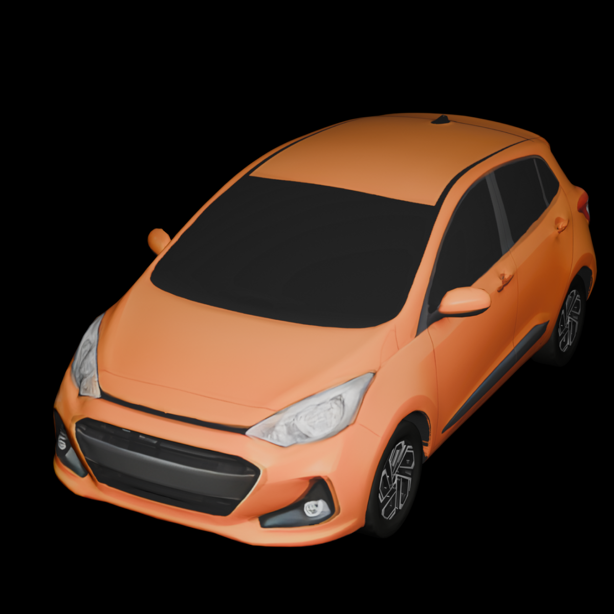 A compact city hatchback with a rounded modern design, wide front grille, swept-back headlights, smooth body panels, short hood, gently sloping roofline, five-door layout, and clean simplified geometry with dark non-transparent windows and small alloy wheels.