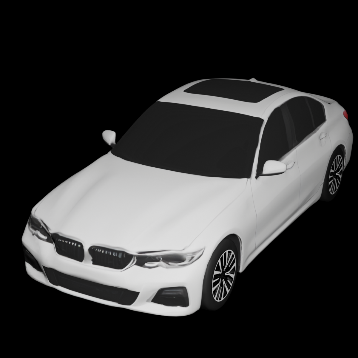 A premium sport sedan with a low-slung aerodynamic profile, signature dual kidney grille, sharp LED headlights, long hood, smooth flowing roofline, sculpted body panels, and clean simplified geometry with dark non-transparent windows and detailed alloy wheels.