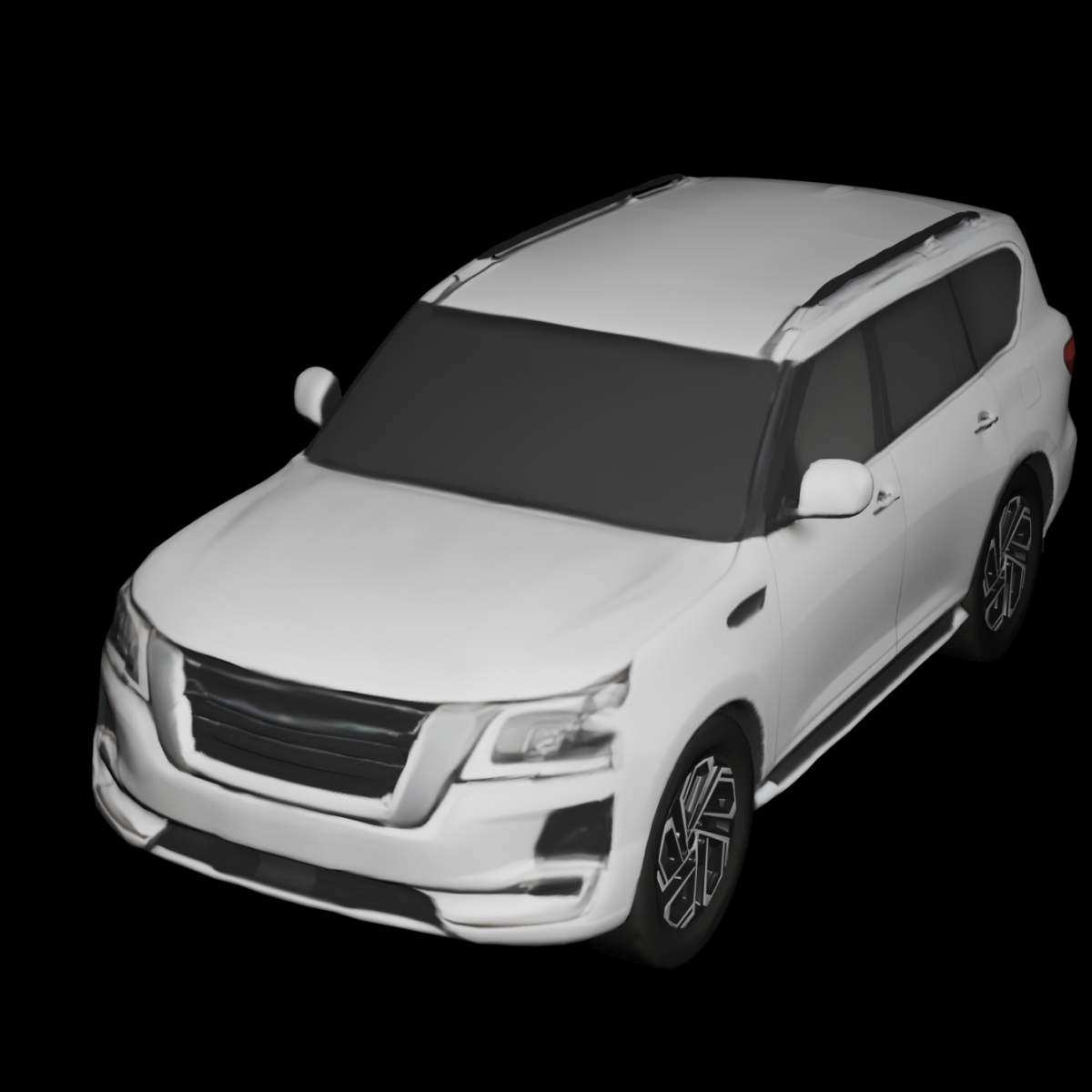 A large full-size SUV with a bold upright stance, wide chrome-accented front grille, rectangular LED headlights, high ground clearance, long boxy body with extended cabin, pronounced wheel arches, roof rails, and clean simplified geometry with dark non-transparent windows and large alloy wheels.