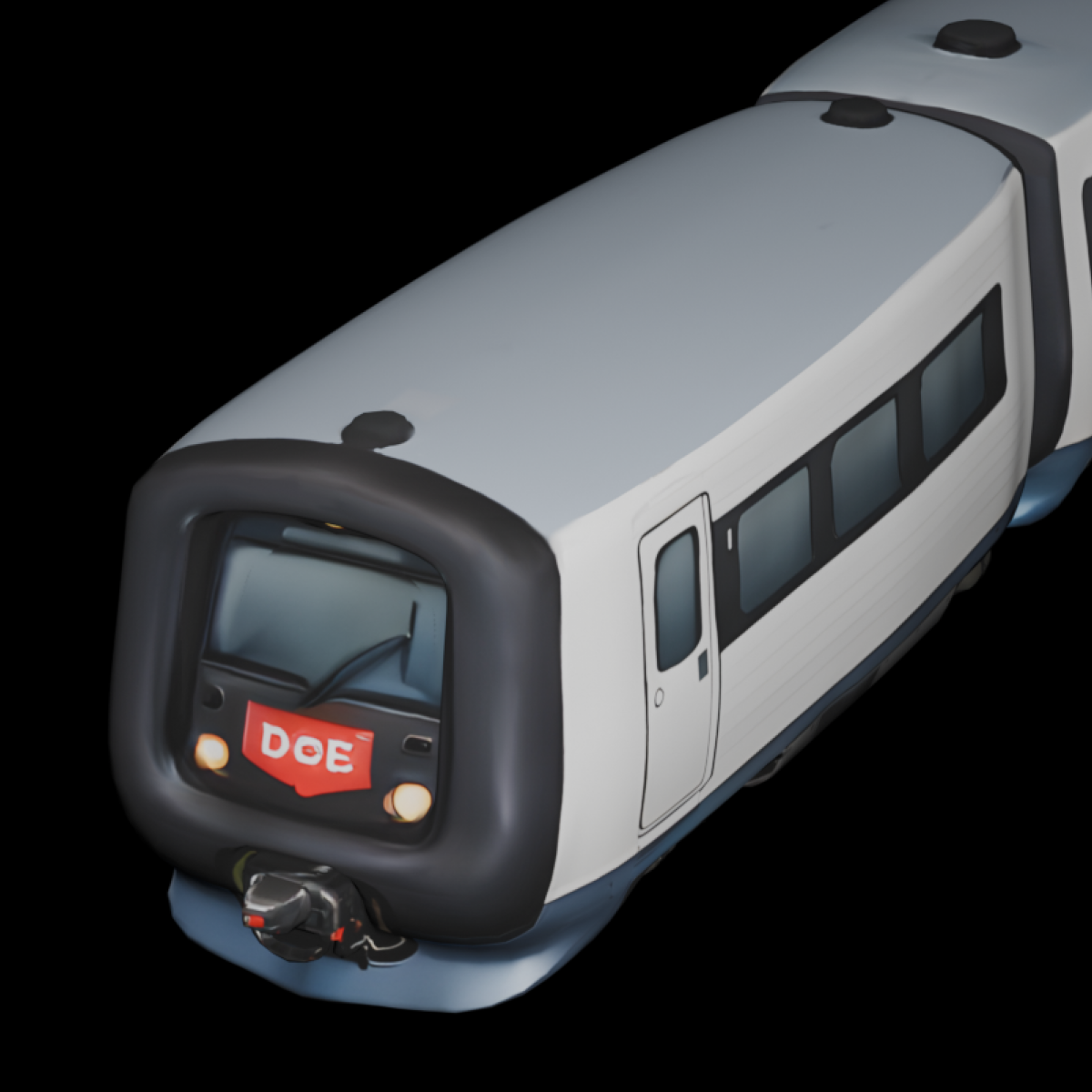 A distinctive diesel multiple unit train with a rounded rubber-framed cab front, large curved windshield, compact aerodynamic body, evenly spaced side windows, single-leaf passenger doors, articulated carriage connections, roof-mounted equipment housings, and clean simplified geometry with dark non-transparent windows and a streamlined regional rail design.