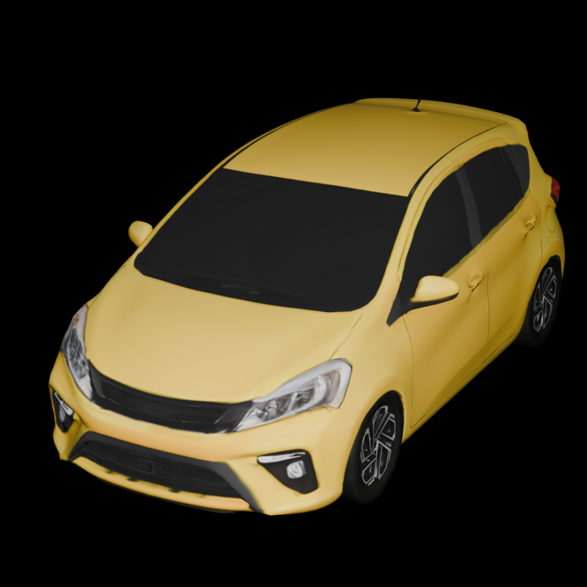 A compact hatchback with a practical modern design, wide front grille, angular headlights, short hood, tall cabin with a gently sloping roofline, five-door layout, smooth body panels, and clean simplified geometry with dark non-transparent windows and compact alloy wheels.